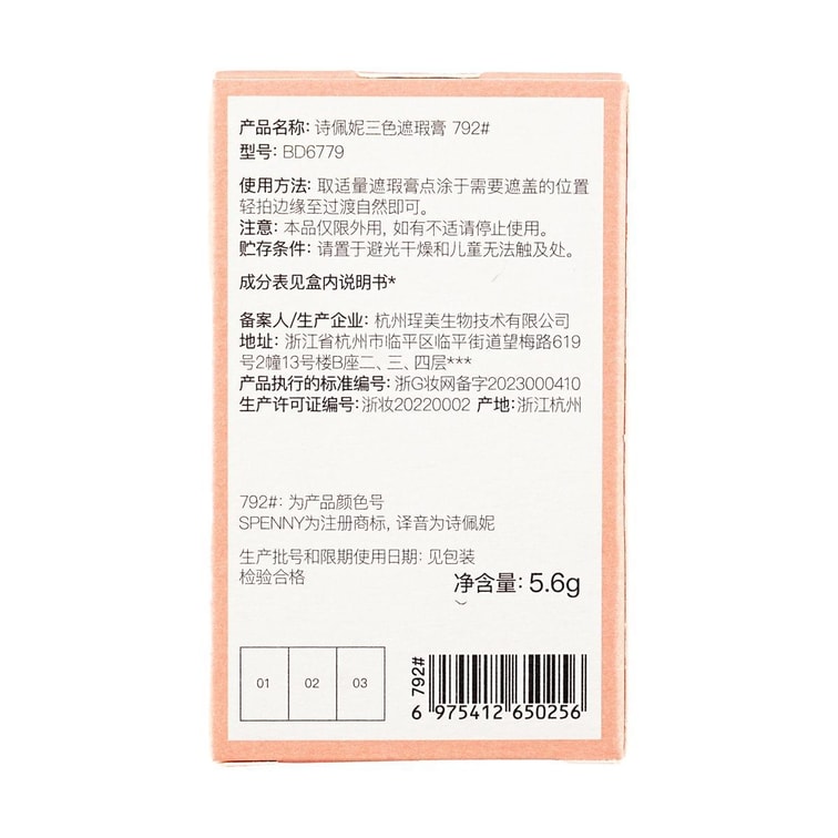 詩佩妮SPENNY 三色遮瑕膏 經典臉部遮暇盤 遮蓋痘印眼袋黑眼圈淚溝 5.6g #792 自然色 適合自然膚色