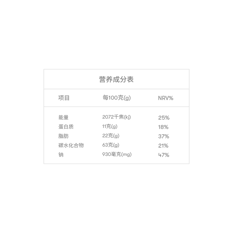 *免責聲明:本頁面所展示的營養成分資訊來自商品包裝,僅供參考。由於包裝版本、語言或拍攝方式的差異,內容可能存在偏差或顯示不完整,請以實際收到的商品包裝為準。若對成分、過敏原或適用族群有疑問,建議於使用前仔細閱讀包裝說明,或聯繫客服取得協助。