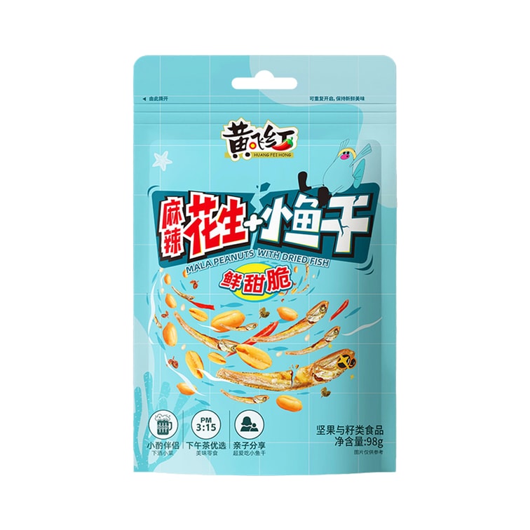 【中國直郵】 黃飛紅 麻辣小魚乾花生 98克