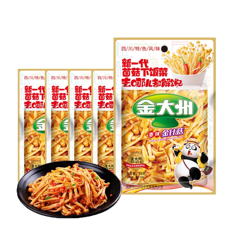 【每袋1$辣解饞 伴飯伴麵】【低卡高蛋白 童年味道】金大洲 金大州 金針菇開袋即食下飯菜 香辣味 28g*5袋
