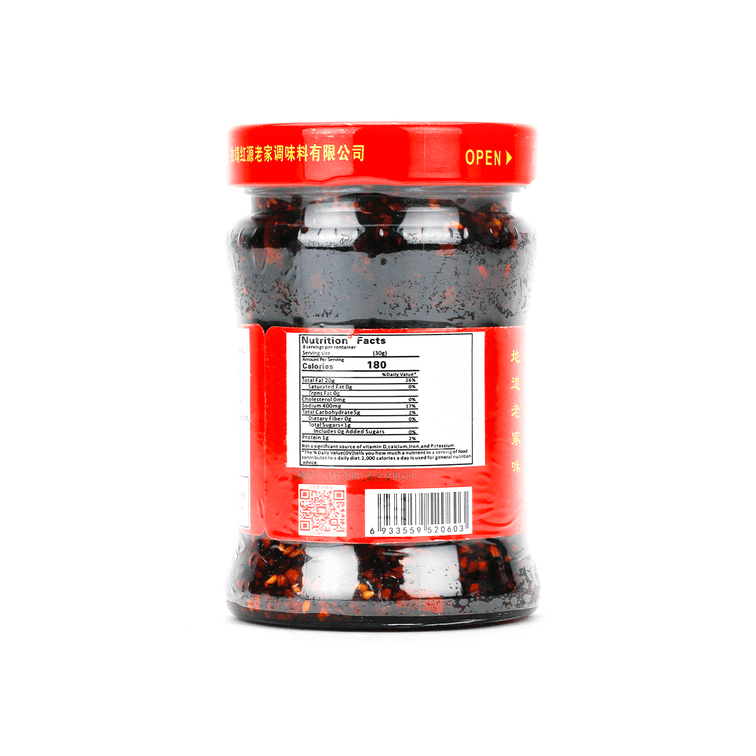 紅源老家油辣椒是滇東風味食品,多年來一直使用傳統及現代工藝製作而成,芝麻、八角、桂皮等多種香料與辣椒在高溫下相聚碰撞,多層次的香味口感交融在一起,油辣椒辣中帶柔,辣而不燥,香味醇厚,口口香脆,可以拌麵拌菜、製作涼拌菜色等。