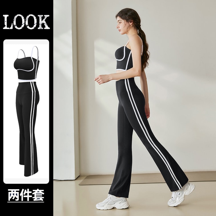 【中國直郵】 HSPM 運動套裝 吊帶背心 運動戶外 高彈瑜珈服兩件裝 黑色套裝 M 1套裝