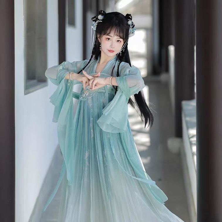 【中國直郵】 青錦閣 春秋款中國風古裝漢元素齊胸襦裙超仙唐製漢服 外披+上衣+吊帶裙+披帛 S