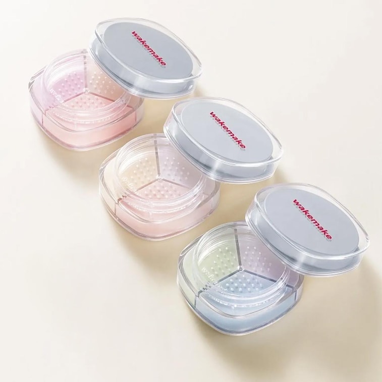 韓國WAKEMAKE唯可魅 持久定妝多效三色修色散粉 遮毛孔控油 4g #01 Pale Clear 藍紫調 泛紅修正 提亮膚色