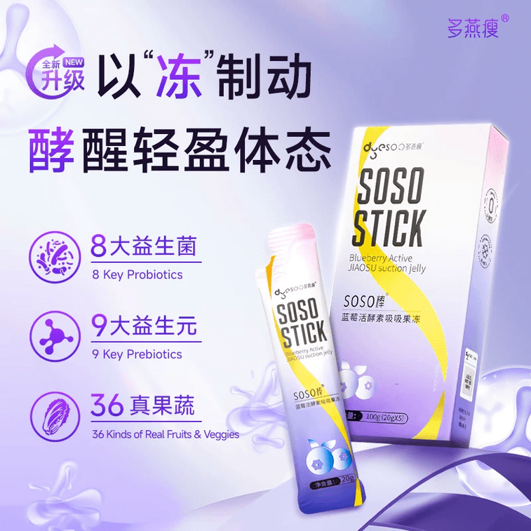 【中國直郵】 多燕瘦 棒藍莓活酵素吸吸果凍 益生菌酵素果凍 促進排便 20g*5條 | 亞米