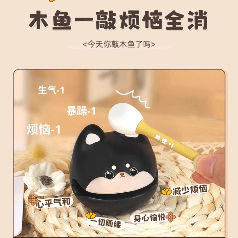 【中國直郵】 黑玩 解壓玩具小木魚敲擊桌面擺飾 黑色招財貓57*68*60mm