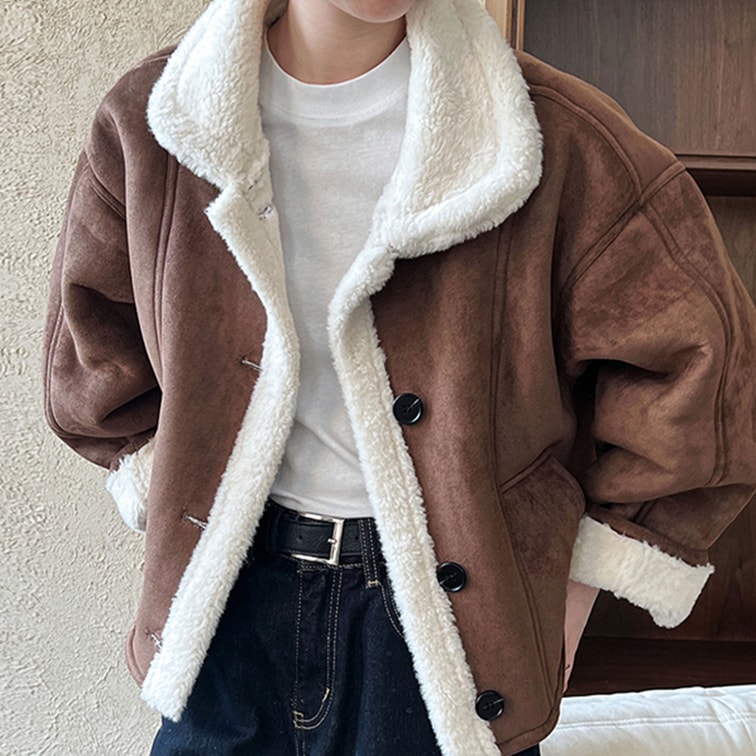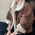 【中國直郵】 LUXI AUNT 冬季新款麂皮夾克皮毛一體撞色仿皮草外套 咖咖色 L
