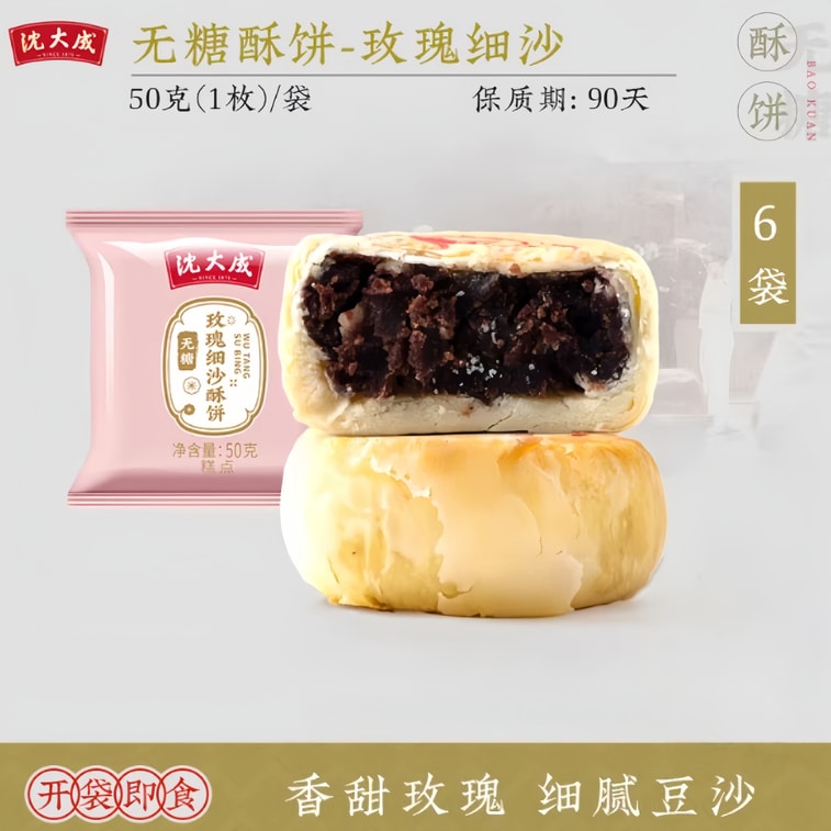 【中國直郵】 沈大成 蘇式無糖酥餅 「玫瑰細沙酥餅」50g*6個 老式五仁豆沙椰蓉多口味 上海特產糕點送禮散裝點心