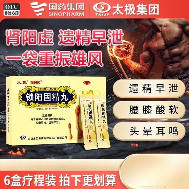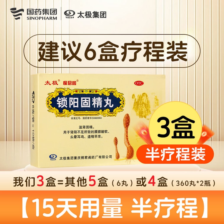 【中國直郵】 太極 鎖陽固精丸 早洩治療 鎖腎固精 腰膝酸軟 遺精早洩 10袋/盒 3盒