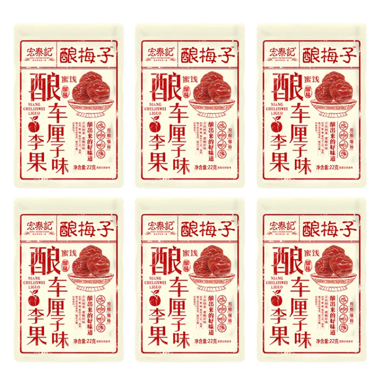 【中國直郵】 宏泰記 酸甜餞果脯組合小袋裝車厘子味李果22g*6袋