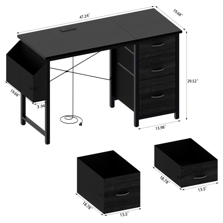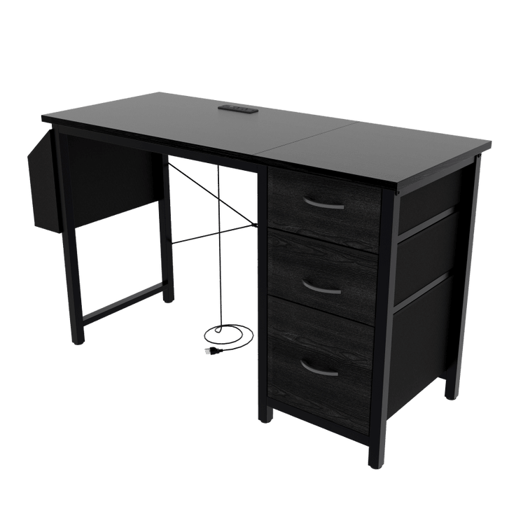 【美國直郵】 美國 hiorin 帶電源插座桌子黑色 1個 易於組裝 軍事化收納矩陣 快裝免工具革命