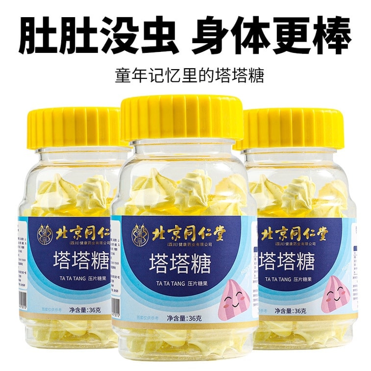 【中國直郵】 北京同仁堂 塔塔糖 金塔糖兒童糖果樂寶糖驅蛔蟲 36g/罐