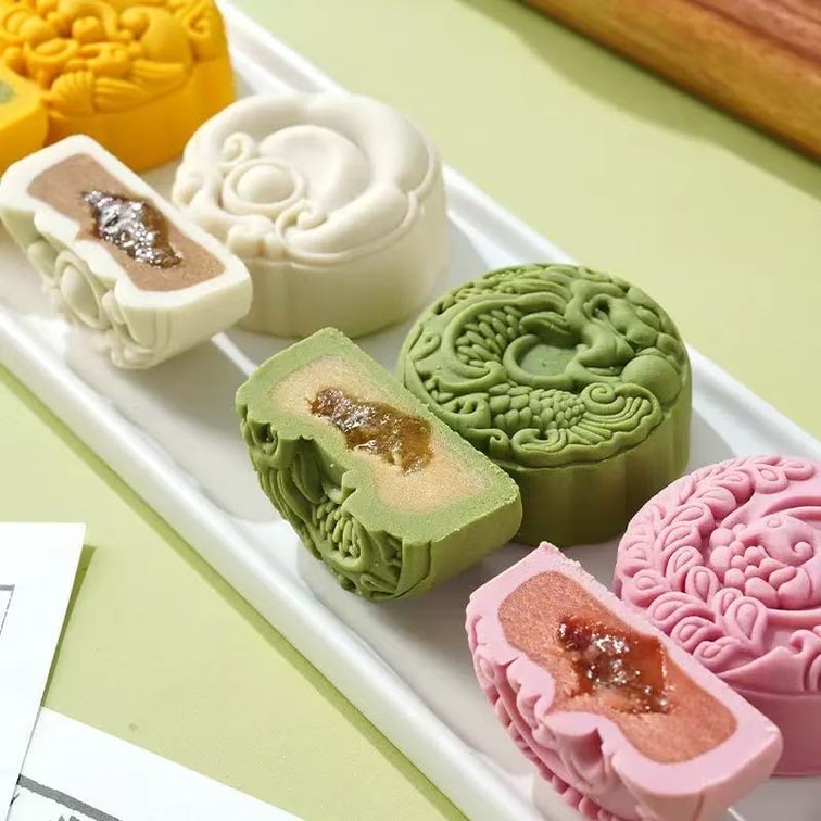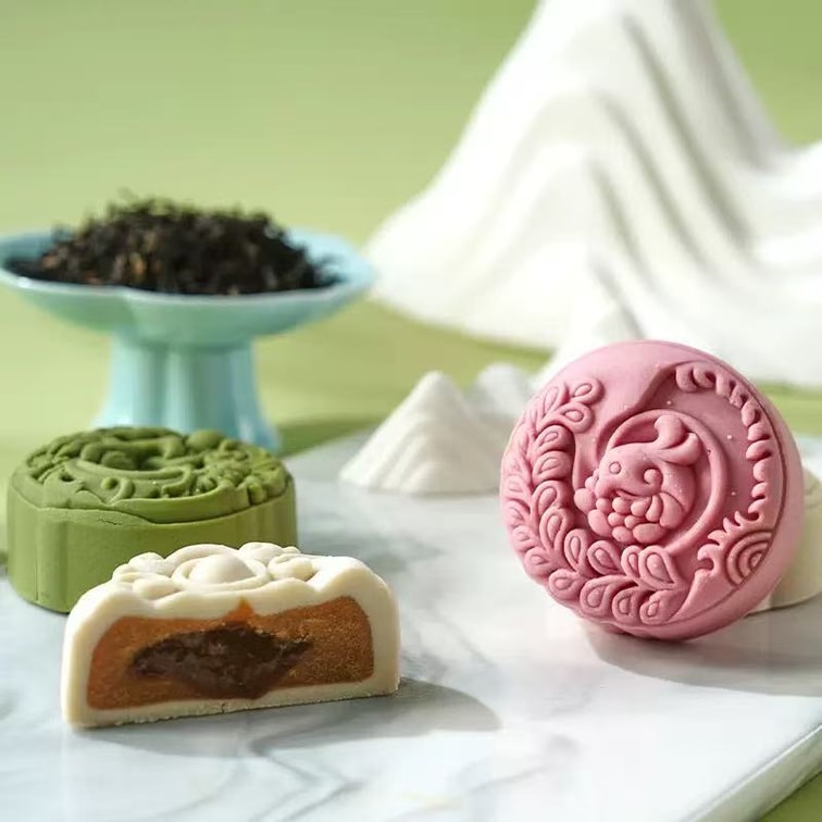 姚記 果遇茶桃山皮 四種口味月餅 龍井綠茶月餅 武夷大紅袍月餅 甘露琵琶月餅 法國莓果月餅 280g