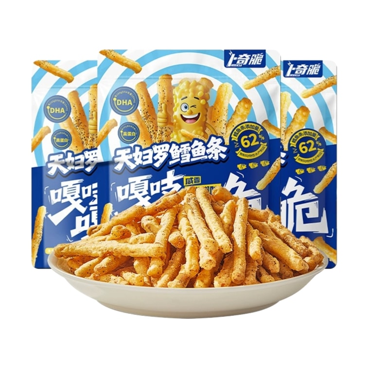 【中國直郵】 卜奇脆 天婦羅鱈魚條海鹽胡椒味15g*5袋