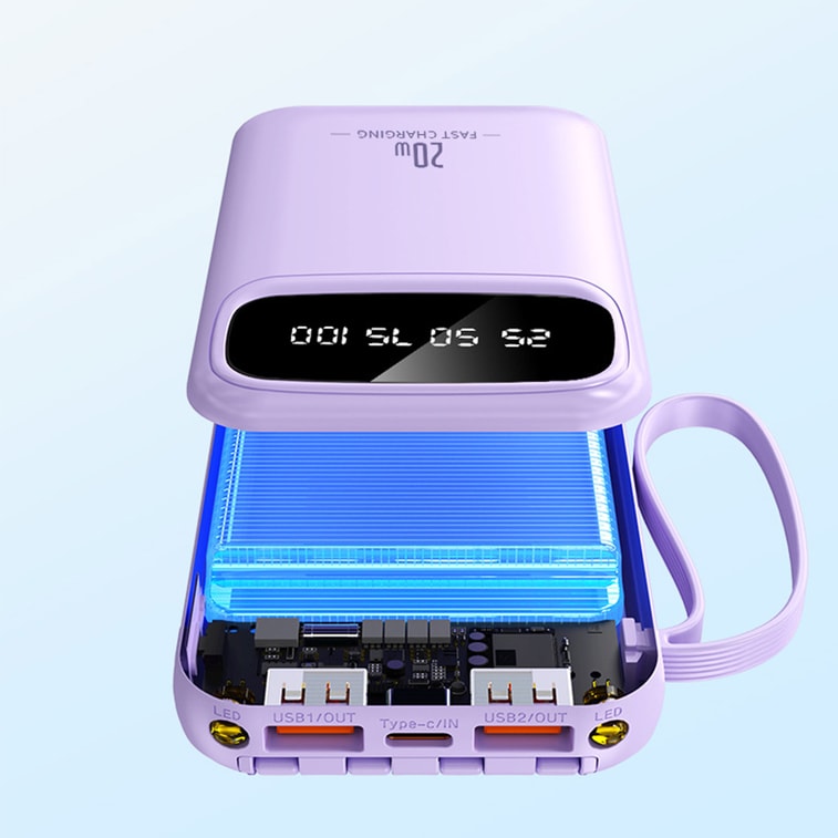 【中國直郵】 HSPM 新款自備四線超大容量附照明行動電源 淺紫色 20000毫安