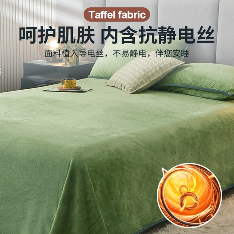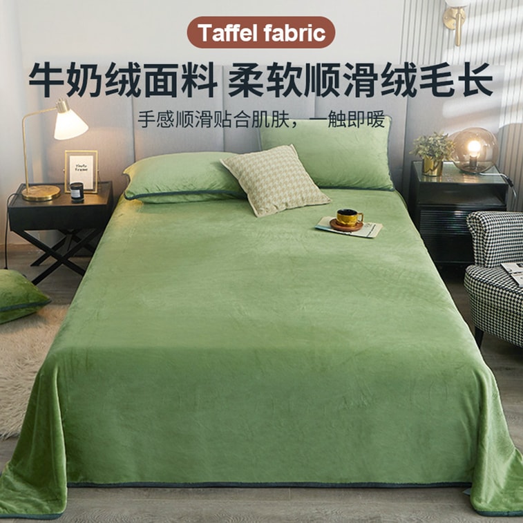 【中國直郵】 HSPM 加厚牛奶絨床單 冬季珊瑚絨法蘭絨被單 保暖加絨毛毯 抹茶綠床單 180cmx230cm 單件