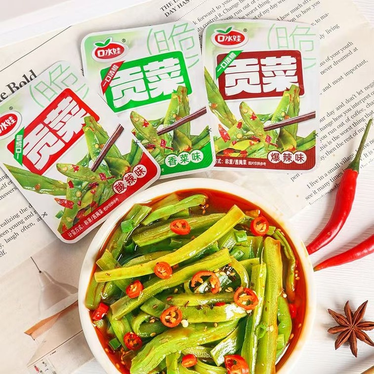口水娃 三口味貢菜 下飯零食實惠裝 爆辣味 酸辣味 香菜味 香辣爽滑嘎吱脆 125g 實惠12袋分裝