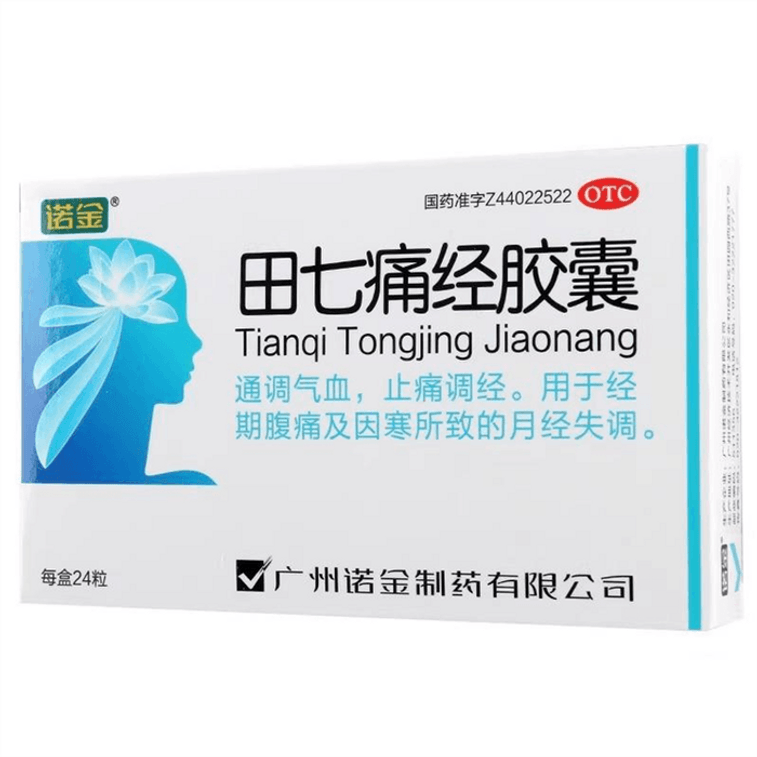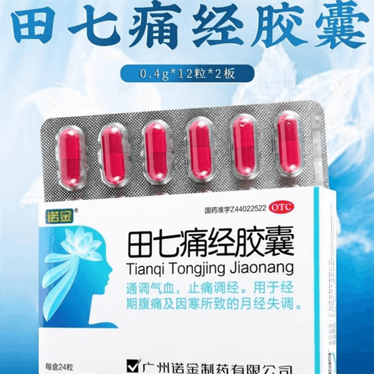 Tianqi Dysmenorrhea Capsules for Abdominal Pain and Cold during menstruation, 24 capsules per box,