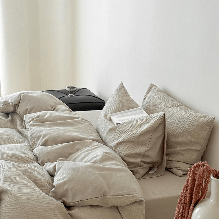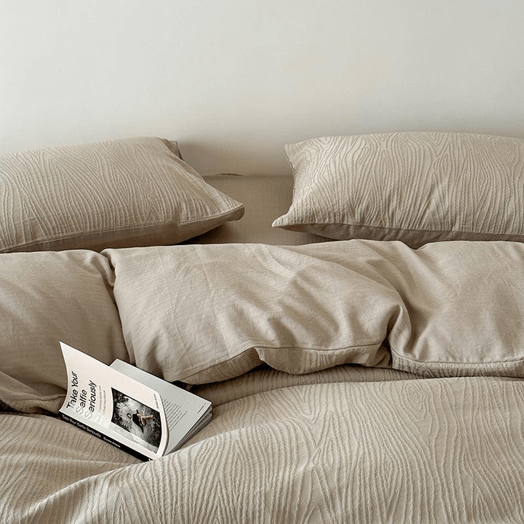 【中國直郵】Lullabuy 木語 全棉提花樹紋床上四件套床上用品家居好物(床單*1+被套*1+枕套*2)King Size 暖石灰