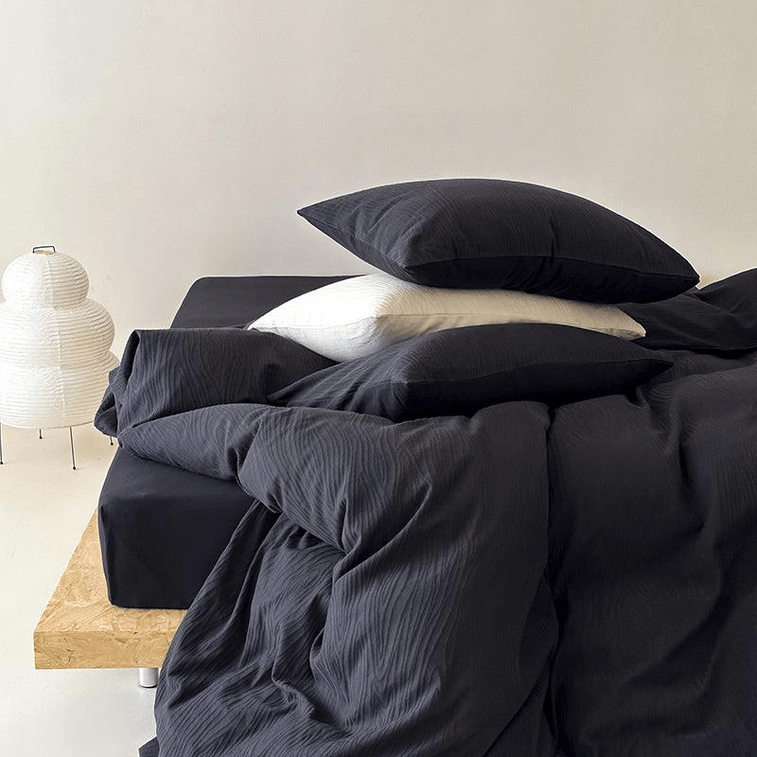 【中國直郵】 Lullabuy 木語 全棉提花樹紋床上四件套床上用品家居好物(床單*1+被套*1+枕頭套*2)King Size 午夜石墨