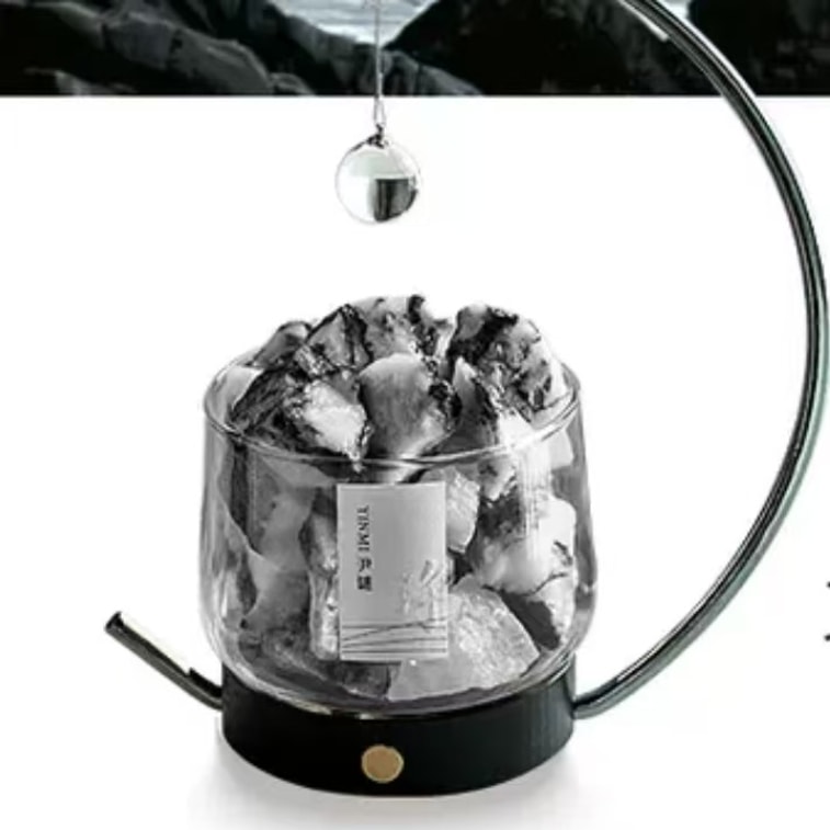 尹謎 淨系列水晶擴香石 黑色款 禮盒*1擴香石*1充電線*1玻璃杯*1帶燈支架*1 贈送精油*2【高級藝術擺飾】