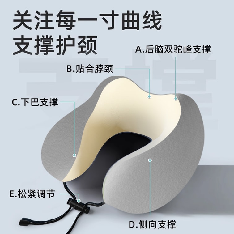 U-Shaped Travel Pillow with Memory Foam - Slow-Rebound Neck Support, Ice Silk Fabric (Gray) & Portable Carry Case