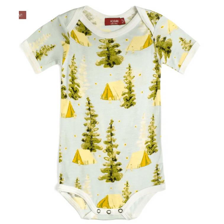 美國 MOM LOVES ME 牛奶倉 31125 露營圖案竹纖維短袖連身衣 12-18個月