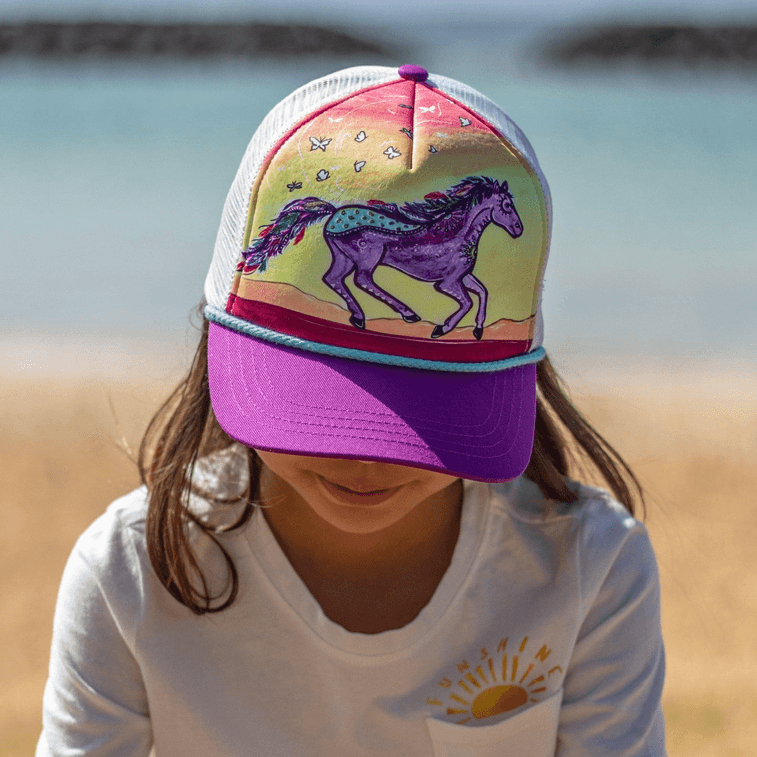美國 MOM LOVES ME 童裝女童藝術家系列清涼卡車帽遮陽帽 - 馬羽毛 3-12歲