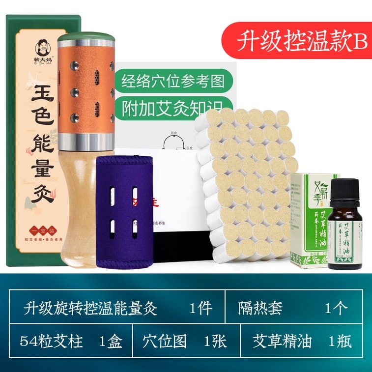 【中國直郵】 蘄大媽 臉部艾灸棒 隨身灸 玉石臉部能量灸 升級控溫版+54粒艾柱(送艾草精油及多用穴位圖)【張嘉倪同款】