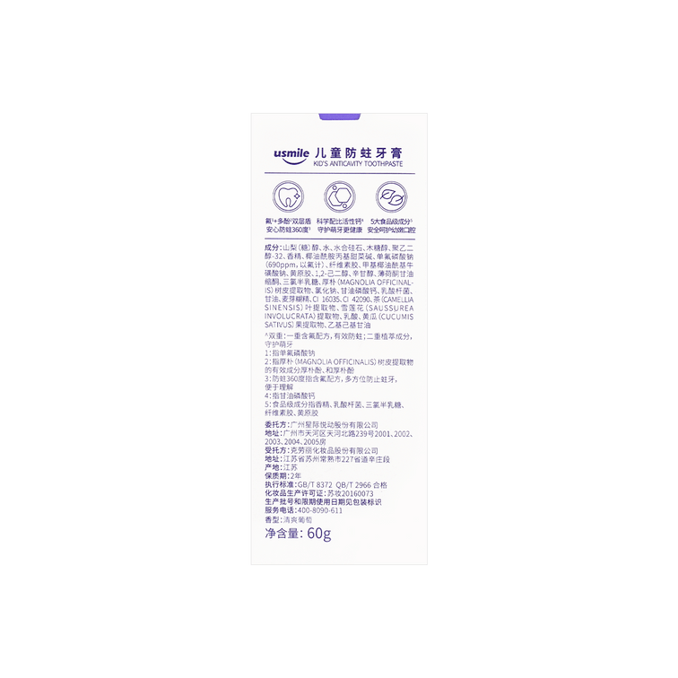 USMILE 兒童牙膏 2-12歲全階段換牙期含氟防蛀牙 葡萄 60g