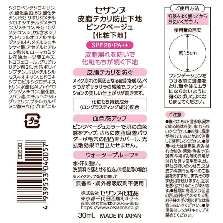 【日本直郵】日本 倩麗 隔離霜 控油妝前乳 自然粉紅色 遮瑕提亮 保濕隱形