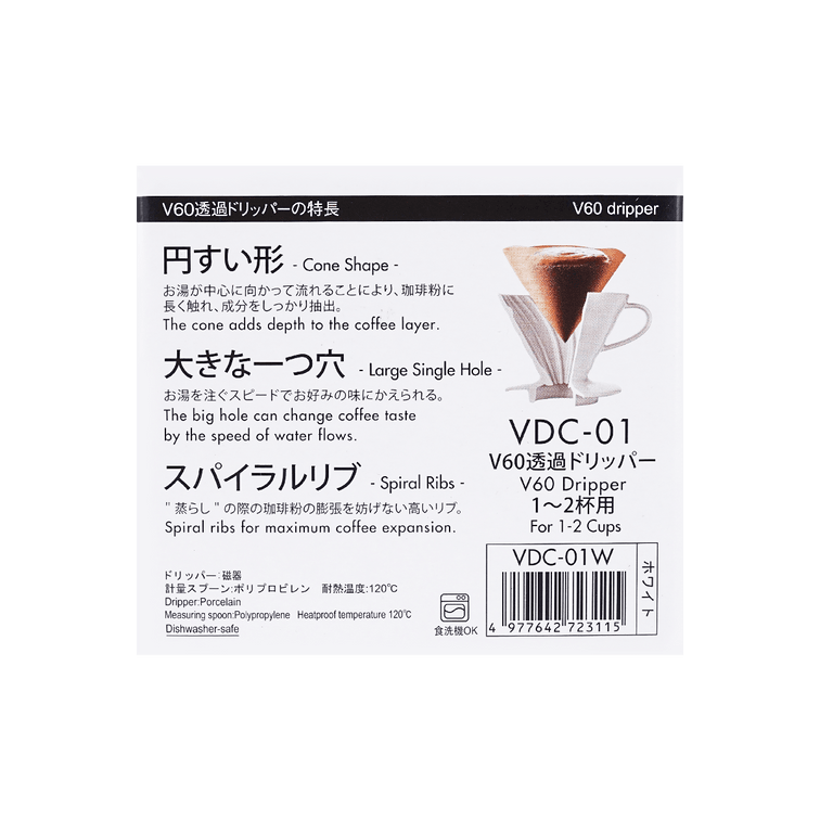日本HARIO有田燒 V60陶瓷濾杯手沖咖啡杯子 錐形過濾杯 01濾杯 白色 1~2人用