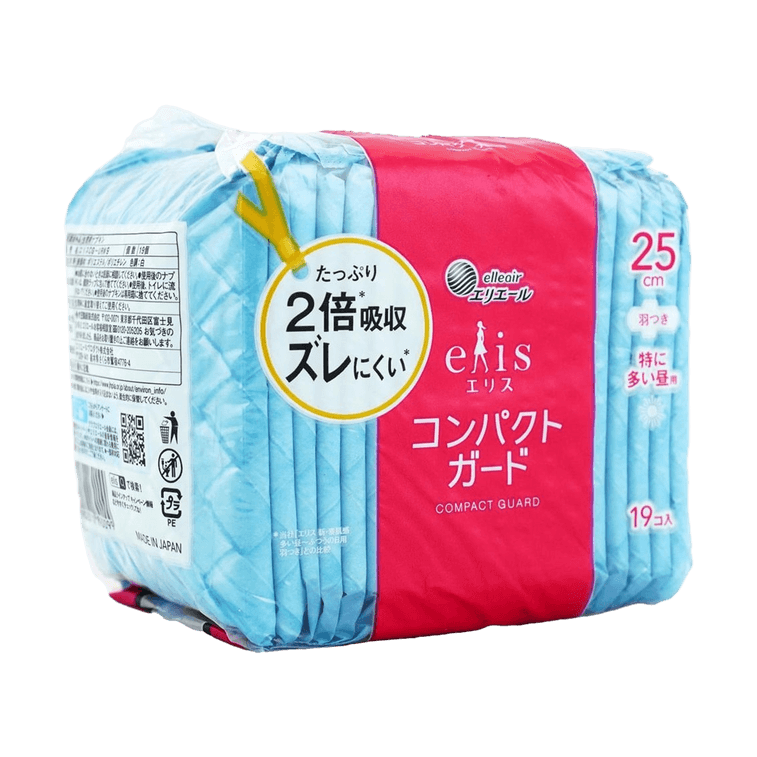 ELIS 日本ELIS怡麗 便攜式超薄瞬吸型衛生棉 量多日用型 有護翼 250mm 19枚入*3包【超值3包】 | 亞米