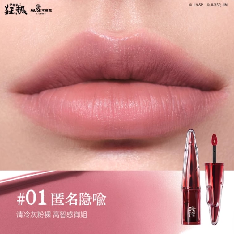 【中國直郵】 小奧汀 伊藤潤二狂熱聯名 富江絲絨水唇泥 柔霧絲滑 01匿名隱喻 清冷灰粉裸 高智感禦姐 2.8g 1支裝