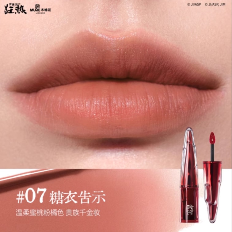 【中國直郵】 小奧汀 伊藤潤二狂熱聯名 富江絲絨水唇泥 柔霧絲滑 07糖衣告示 溫柔蜜桃粉橘色 貴族千金妝 2.8g 1支裝