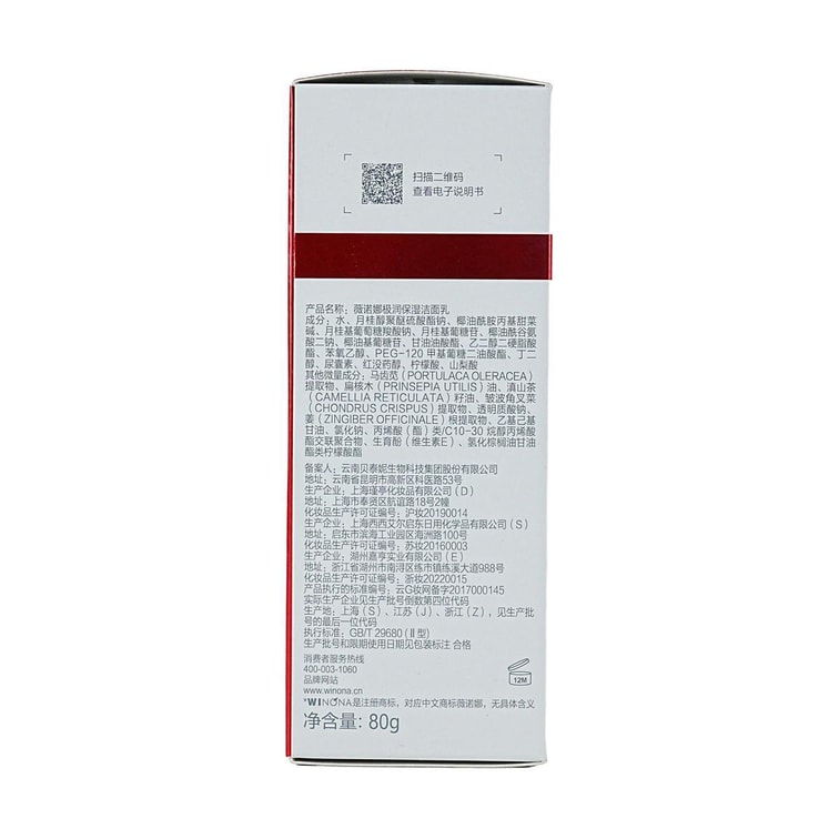 WINONA薇諾娜 極潤保濕潔面乳 溫和補水無皂基氨基酸洗面乳 80g 弱敏肌清潔【乾皮本命】