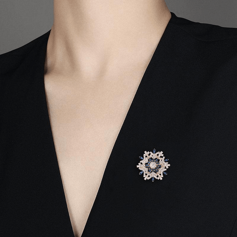 【中國直郵】 閨美飾品 紫羅蘭 藍雪晶胸針高檔女精緻藍色雪晶可旋轉胸花別針 銀白 3厘米