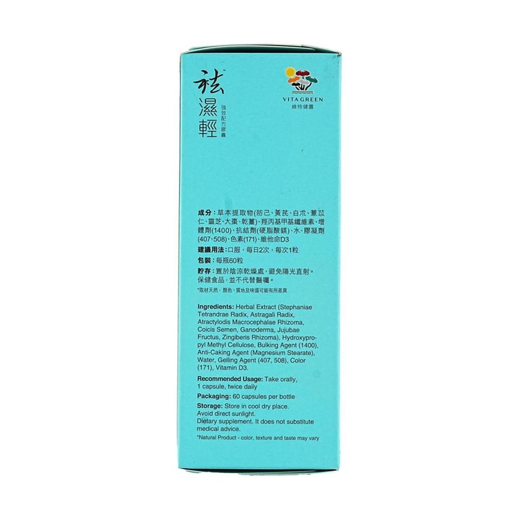 VITA GREEN維特健靈 健脾祛濕丸 祛濕輕強效配方膠囊 60粒 草本精華益脾健胃養腎 清熱祛濕 改善濕重虛肥【告別虛濕胖】