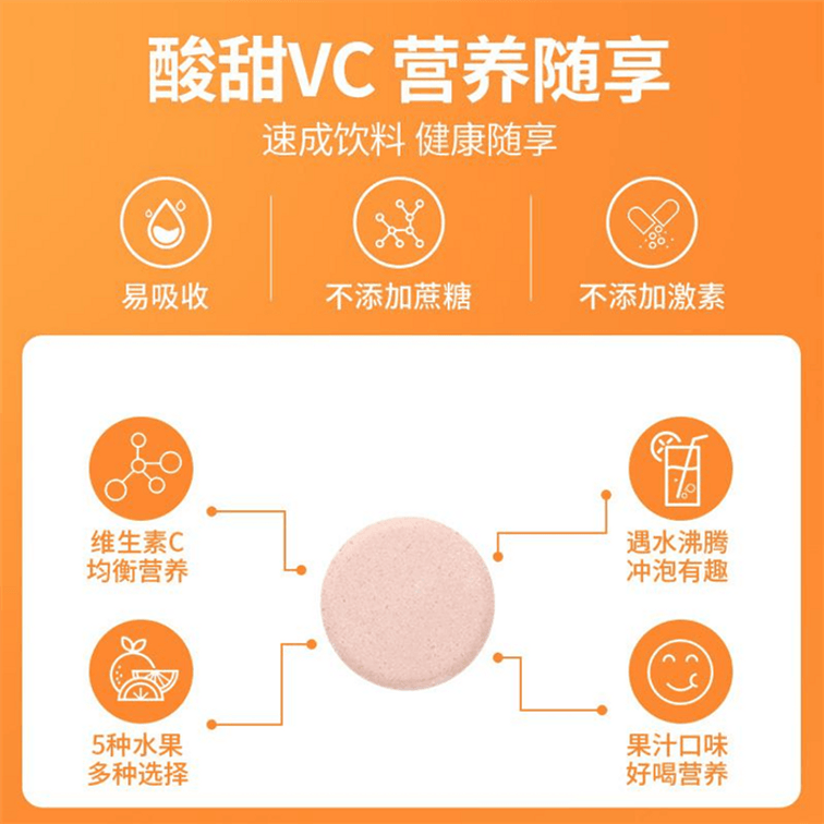 Vitamin C effervescent tablets 20 solid beverage sports sweet orange flavor 80g per bottle