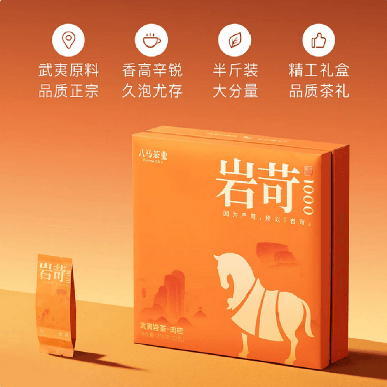 八馬茶業 八馬茶業 武夷山岩茶 特級肉桂 烏龍茶 王信記岩苛系列1000-肉桂 256g/盒 禮盒裝 過節送長輩送親屬必備 | 亞米