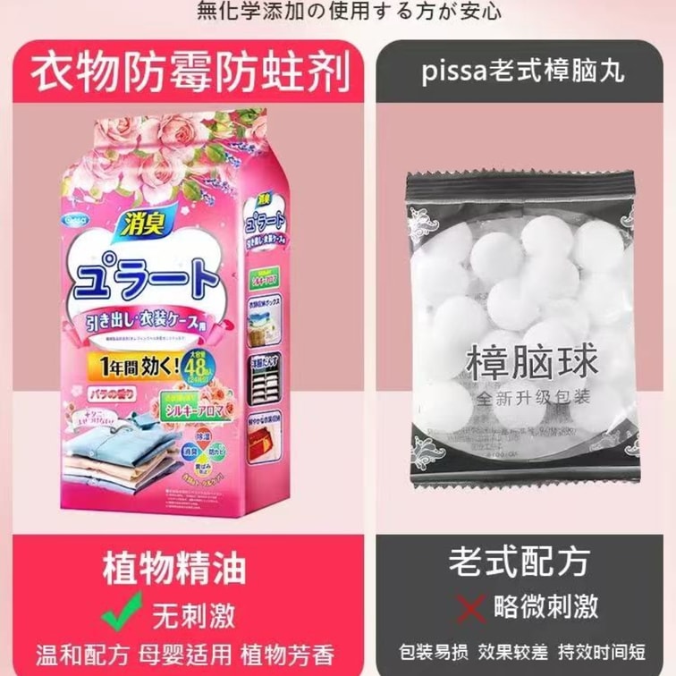Mothballs Wardrobe Anti-mould Anti-moisture Deodorization And Anti-mite De-worming #Rose 48 pcs