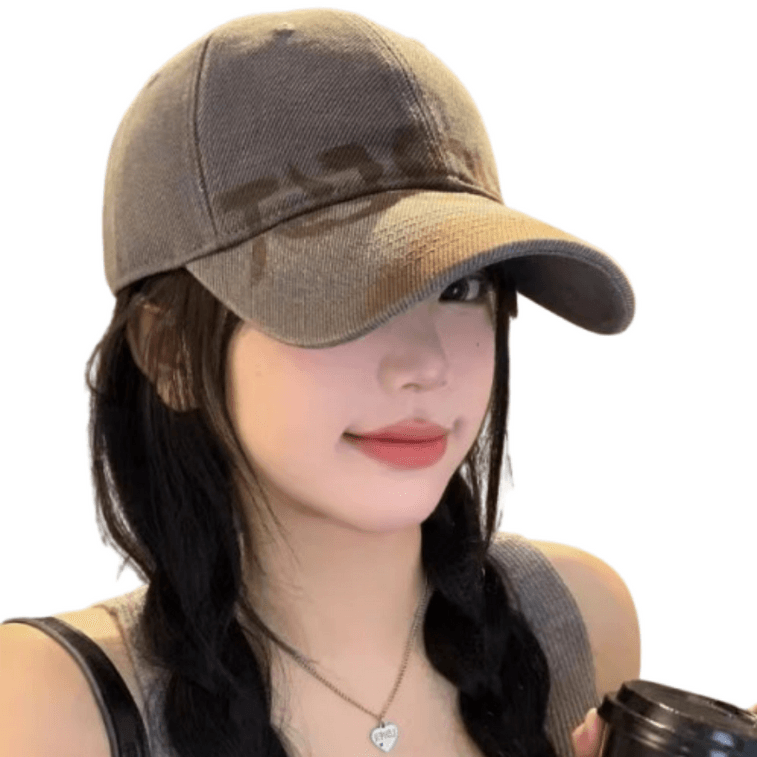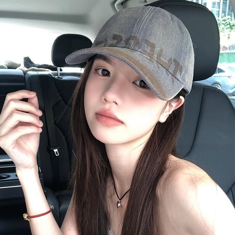 【中國直郵】 親太太 水洗做舊字母棒球帽女美式復古大頭圍鴨舌帽顯臉小 深灰色1個 M(56-58cm)