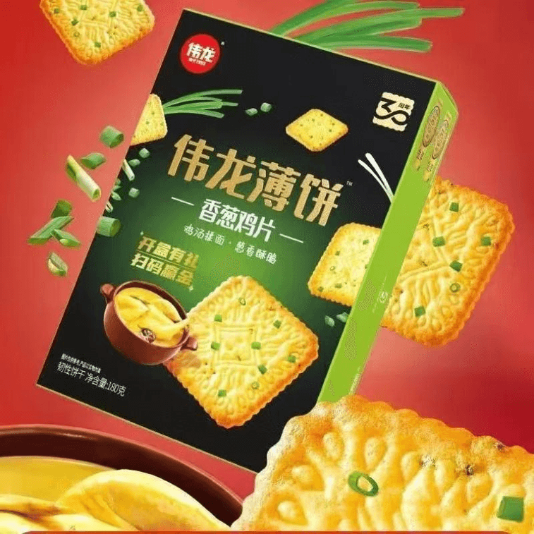 【中國直郵】偉龍 香蔥雞片蔥香脆薄脆餅乾辦公室零食休閒解饞小餅乾 180g*1盒
