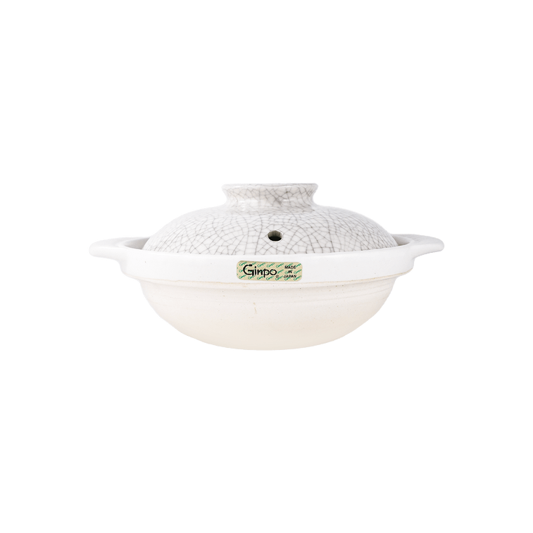 日本GINPO 萬古燒 白色陶瓷砂鍋 迷你家用燉鍋 36oz 8.5”D x 4.5”H