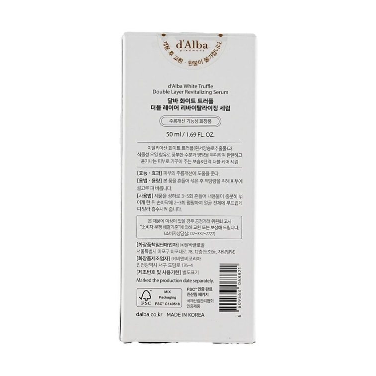 韓國D'ALBA黛爾珀 白松露雙效煥活精華液 50ml 緊緻提亮 100h持久保濕 純素 清爽溫和低刺激