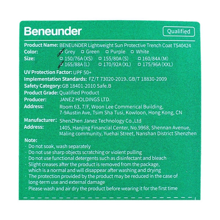 BENEUNDER蕉下 女士輕薄中長款防曬衣夏季風衣 薄外套雨衣 防曬帽子口罩一體衣 烏雲灰 165/88A(L)