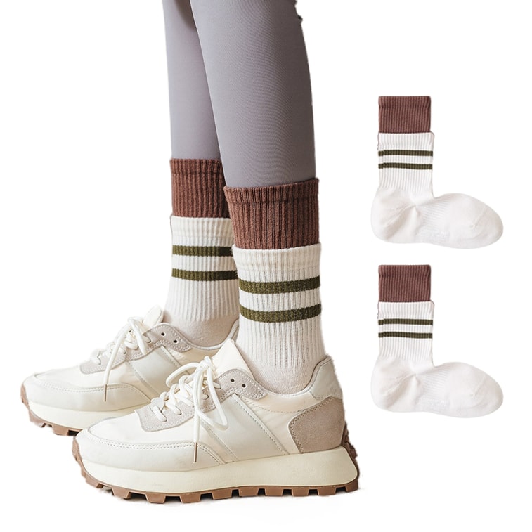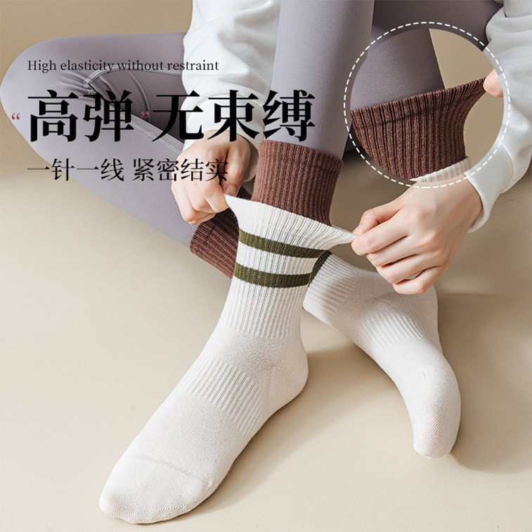 【中國直郵】 HSPM 瑜珈襪雙層中筒襪抗菌防臭女運動襪 甜杏色F 1雙 | 亞米