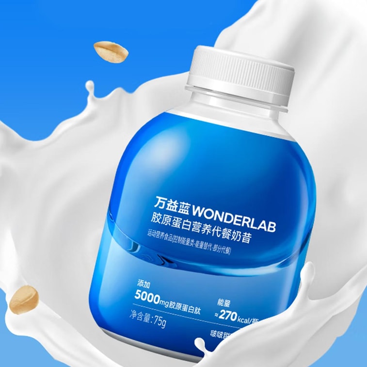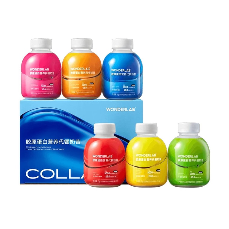 WONDERLAB萬益藍 小胖瓶膠原蛋白代餐奶昔 蛋白質維生素礦物質膳食纖維飽腹 早餐速食沖飲代餐粉 75g*6瓶 嘭嘭好狀態無腹擔 0蔗糖【6種口味一周裝】