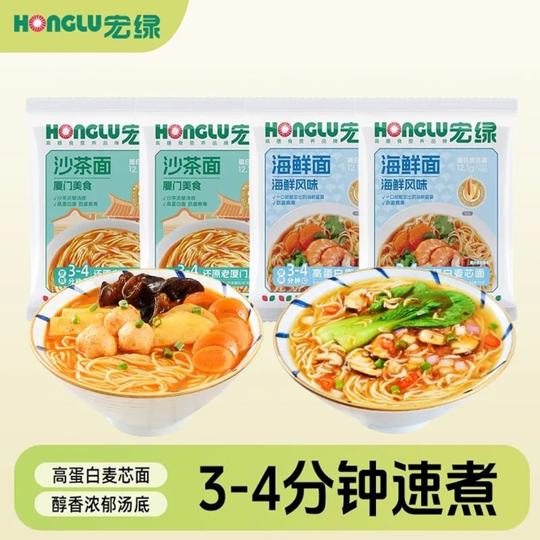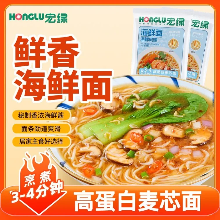 宏綠 宏綠 非油炸海鮮風味麵高蛋白麵餅袋裝面正品速食快煮廈門美食海鮮麵100g*1袋 | 亞米