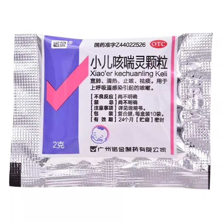 【中國直郵】 諾金 小兒咳喘靈顆粒 清熱祛痰 適用於兒童咳嗽止咳感染宜肺 2g*10袋/盒